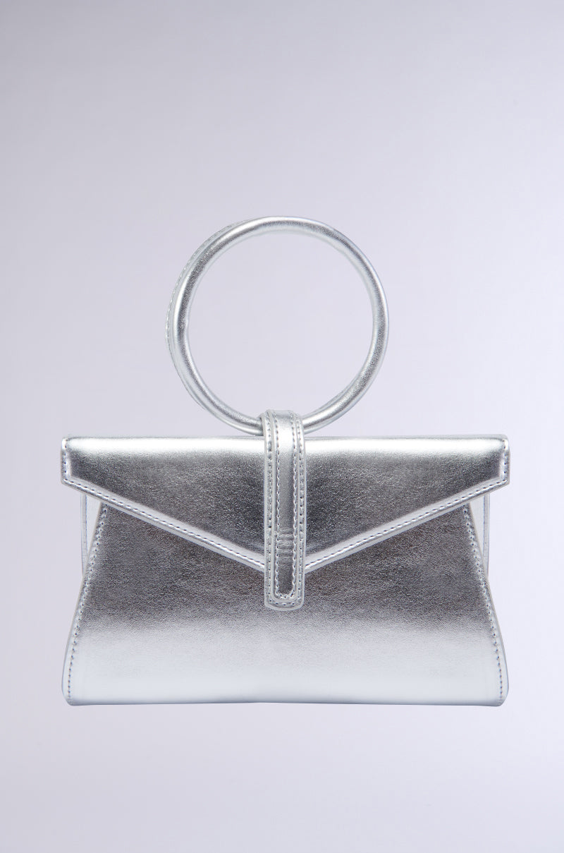 Your phone will be blowing up because of The AKIRA Label Call My Phone Purse. This sleek accessory boasts a metallic leather base and features a structured rectangular silhouette. tonal stitching. and a front flap with a strappy belt applique and an inner magnetic snap button closure. Complete with a circle top handle. a roomy lined interior with a zipper pocket. and a removable coordinating strap for a crossbody fit. Style with a leather jacket and a mini skirt for an effortlessly chic ensemble.